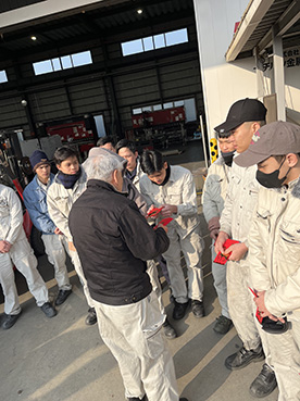 「お年玉」をベトナム人スタッフに配ります。