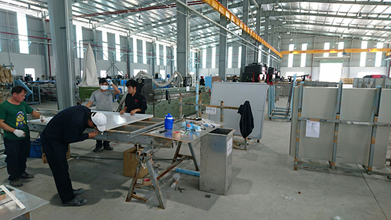 投稿日: 2018年4月27日2018年5月10日 ベトナム新工場・本格稼働に向け準備中・・・2 (前回からのつづき) 工場全景です。とても広いです。 左側に溶接コーナーがあります。溶接テーブルを増設予定です。 溶接コーナーの奥から。 材料置き場です。天井クレーンを取り付けました。 こちらも材料置き場。 ベンダー。工場中央に位置しています。 今回新設した新しいタレパンです。「めっちゃ調子がいい」とは、サイゴン スタッフ談。 今までのタレパン。タレパン2台体制です。 形材切断コーナー。左奥にシャーリングが見えます。 右側の水色の機械が、新しく設置したセットプレスです。 組み立てコーナー。 ランニングソーもあります。(中央みどり色の機械) この日、製品検査がありました。 徐々に本格稼働しています。 外に出ると、こちらも新工場で新しく設置したトレーラードッグ。 トレーラーがドッグに駐車すると荷台の床が出荷場の高さと同じになります。 段差がフラットになるため、荷物の積み込み、積み下ろしが楽になりました。 変わってこちらは、新工場になって初めての慰労会の様子です。イチキンサイゴンも大所帯になりました。現在のイチキン サイゴンは100名のスタッフが働いています。 イチキン サイゴンの首脳陣。左一番手前が川瀬社長です。とてもごきげんのようです。川瀬社長の後ろが生産管理長のタン、右側一番手前、帽子を被っているのが溶接チームリーダーのアン、その後ろが組み立てリーダーのエム、さらに後ろが機械加工リーダーのトム。この4人が4年間、川瀬社長を支えてくれました。みんなとっても日本語が上手です。 引っ越しは完了しましたので、これから本格稼働に向けてしっかりと体制を整えていきます。 ホームページも随時更新していきますので、今後のベトナム新工場にご注目ください!