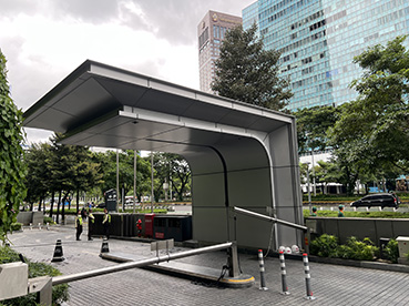 建物内エントランスの柱と天井パネルも製作していますが、手荷物検査があったり、