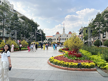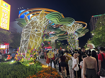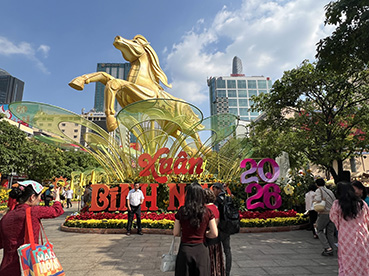 グエンフエ通りは今年も干支の午と草花で彩られています。